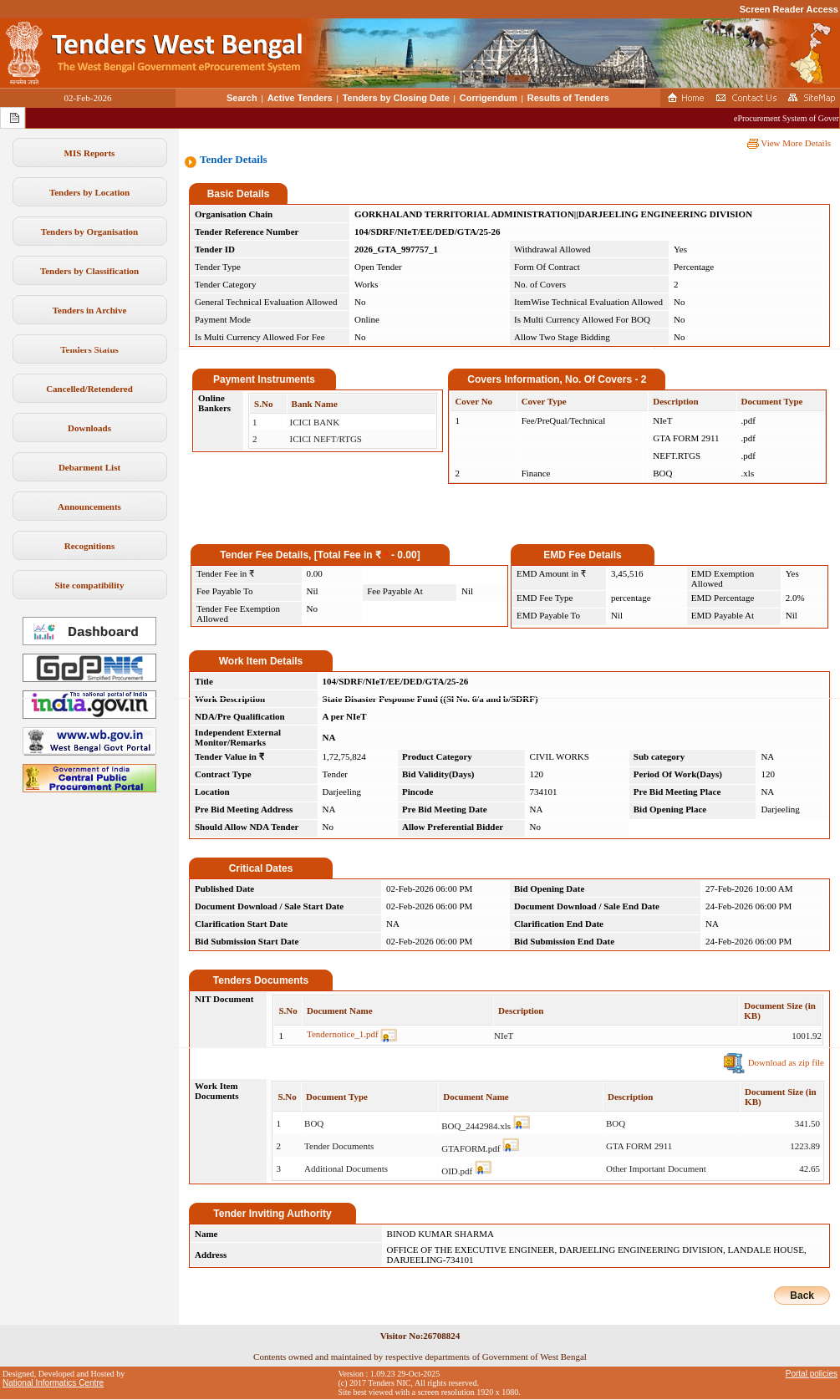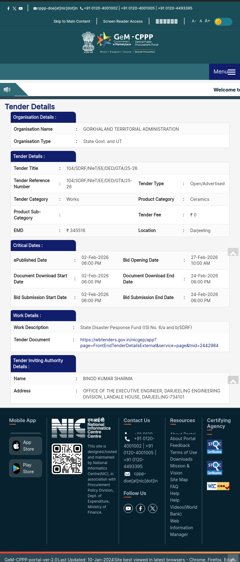 : Office Of The Executive Engineer, Darjeeling Engineering Division, Landale House, Darjeeling-734101 |