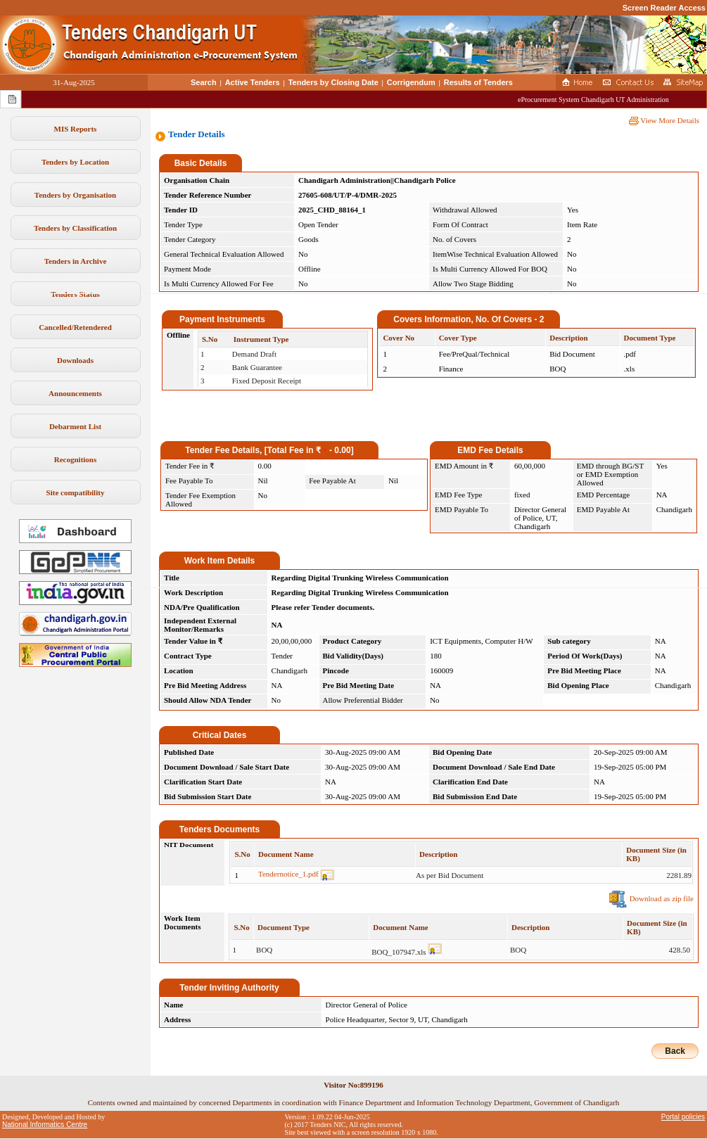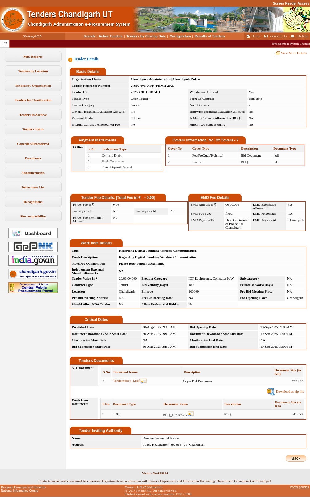 Bid Open Date | : Sept. 20, 2025, 9 a.m. |